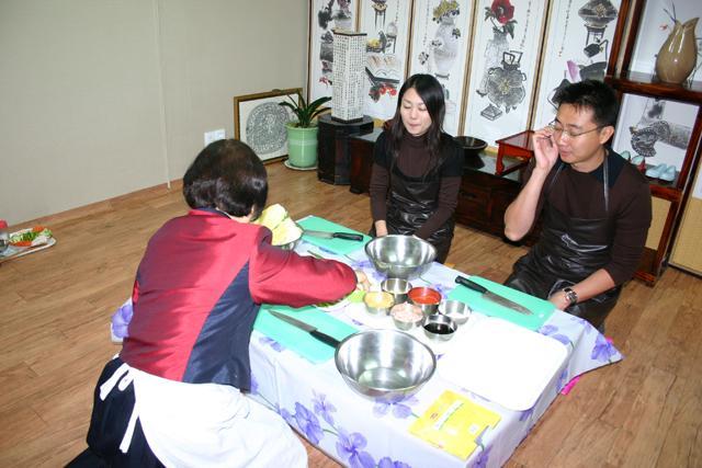 キムチやチヂミ、トッポッキなどおなじみの韓国の家庭料理を作れる料理体験!こちらは兪(ユ)さん家ファミリーのお母さんと一緒に料理を作りながら、美味しく作れるコツなども教えてもらえちゃいます。今回は、韓国料理といえばっ!のキムチと、チヂミを作ってみました?^^。あっきーはキムチを作るのは初めて。キムチ作りって難しいんじゃないの!?と、ドキドキしながら、マレーシア人の男の方と一緒にクッキングスタートっ!
