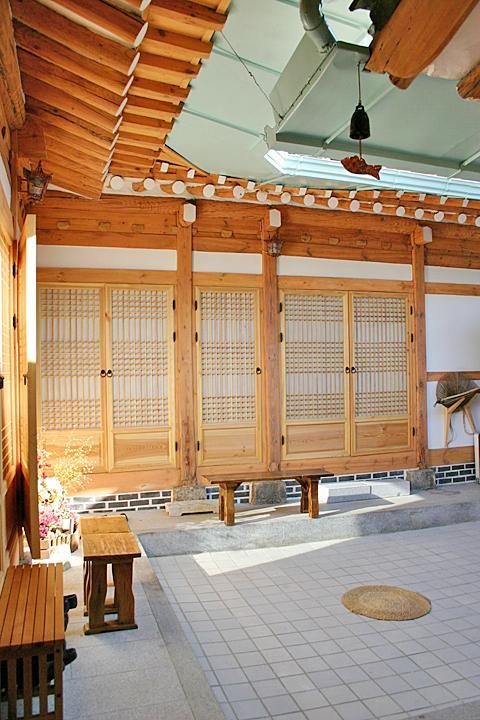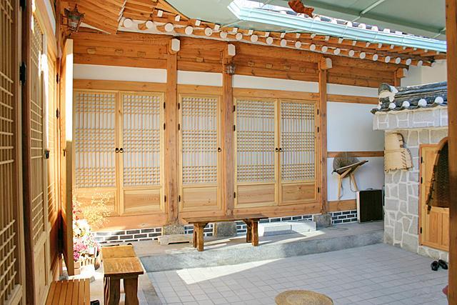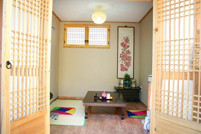 中庭やお部屋の中も昔の韓国テイスト満載。こじんまりとしてシンプルながらも韓国伝統を思わせる素敵なインテリアや家具がいっぱい飾られています。住宅地の静かな環境もグッド?^^。天気の良い日にこの中庭でお茶を飲みながらほっと一息休憩?なんてしたら、時間が経つのも忘れてしまいそう・・・。