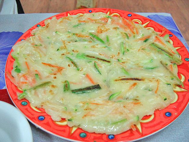キレイに仕上がったチヂミ。お味はグッド♪空腹もあってムシャムシャ全部食べてしまいました?^^ 先生、ご指導ありがとうございました!