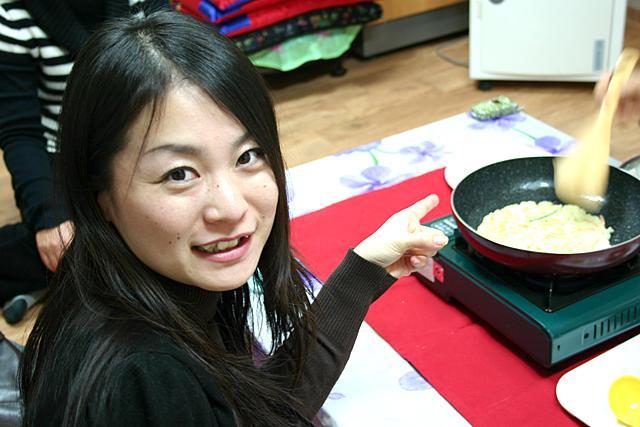 こちらもあらかじめ切って用意されたお野菜などの具を、チヂミの粉と混ぜてフライパンで焼くだけ!具は季節やその時に仕入れたもので焼くそう。う?ん、家庭料理ってカンジ^^。こんなにカンタンなのに出来上がったチヂミはすっごくオイシイ?!いつも作る味とはかなり違う!?そうなんです、兪(ユ)さん家のオモニ(お母さん)に美味しく作れるコツを教えてもらったから、こんなにオイシイチヂミが焼けるんですね?^^ 今度お家でも試してみよ?っと♪