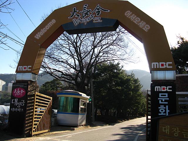 ソウル市内を出て、少しするとのどか~な田園風景が見えてきます。「田舎の風景って、日本も韓国もそんなに差がないなぁ」なんて思ってたら、バスの窓から「大長今」っていう大きなアーチが!テーマパークの入り口にあるアーチなんですが、それを見ただけで「チャングムだ~!」ってバスの中は大騒ぎ!バスがアーチをくぐると「中に入った~!」とまたひと騒ぎ!(笑)テンションアップです!^^