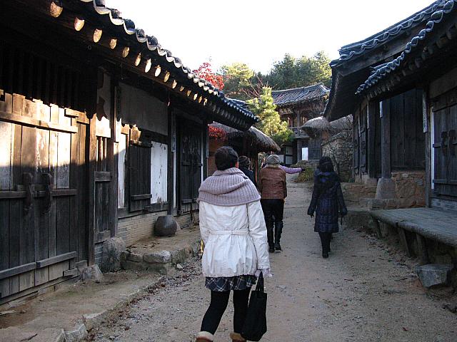 実はこちらのテーマパークに来る間のバス内で、ガイドのチョンさんが「チャングムってドラマ内ではすごくスケールが大きいように描かれてましたが、実際の撮影所はそんなに広くないので、がっかりしないように~」ってお話されてたんで、正直かなり規模が小さいトコロだとういこは思ってたんですが、実際に歩いてみると想像以上にデカイ!!!あっちには、「チャングム」の市場や商人の村、こっちにはスラッカン・・・など雰囲気たっぷり!