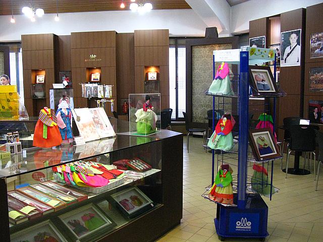 「チャングムテーマパーク」には立派なお土産屋さんもありますヨ!しかも働いているスタッフはほとんど日本の方!実は衣装を借りるトコロのスタッフの方も日本の方だったので、言葉の心配はないし、どのスタッフも落ち着いてる雰囲気の方ばかりでホッとしそう!^^