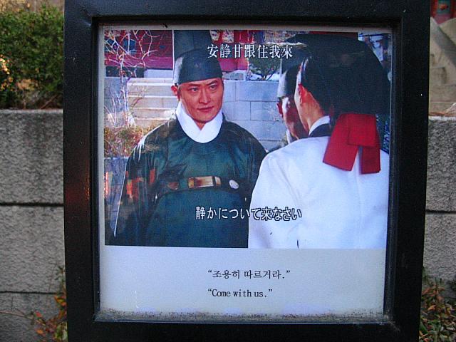 さて。「チャングム」の衣装を着終わったらここで、自由時間。約1時間くらいテーマパーク内を楽しみます。なので!ここでは仕事を忘れて(?)思いっきり自分の世界に入り、ういこが好きだった(若しくは興味ある)シーンを巡って行きたいと思います。(笑)