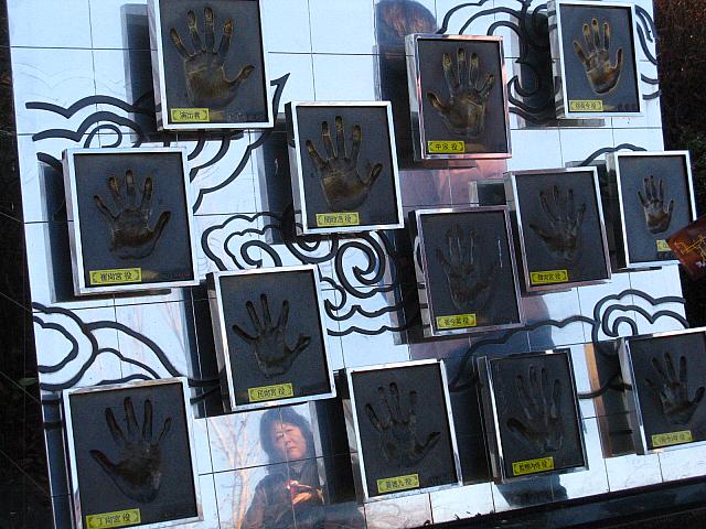 アーチをくぐると前にあるのが、「チャングム」出演者の手形!その前でガイドのチョンさんがどれがどの出演者の手形か説明してくれます。