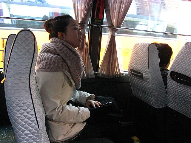 今回ういこが参加したツアーは、「宮廷女官チャングムの誓い半日ツアー」っていうツアーです!このツアーは午前、午後の2回に分けてあるんですが、今回ういこは午前のツアーを選択。なので、8時20分にロッテホテル2階のツアーデスク前に集合しました!この日のツアーの日本語ガイドのチョンさんとご挨拶をして、バスの中へ!今回の参加者はういこと同行してくれるナビ記者あっきー含め6名です^^8時半頃に出発~!