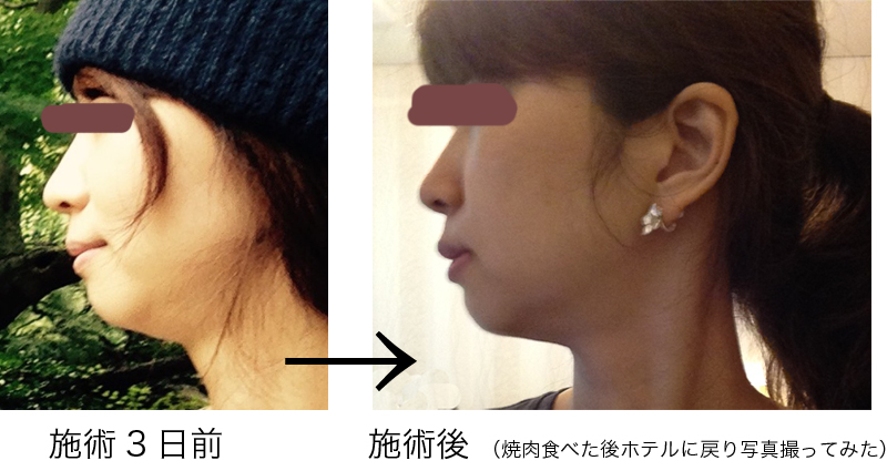 施術受ける3日前の写真と施術後の写真を載せましたので、また見てください。