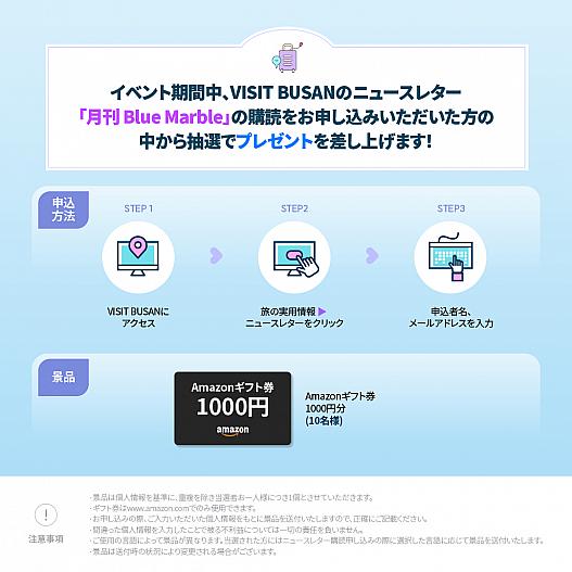 イベント期間中、VISIT BUSANのニュースレター「月刊 Blue Marble」の購読を申し込むと