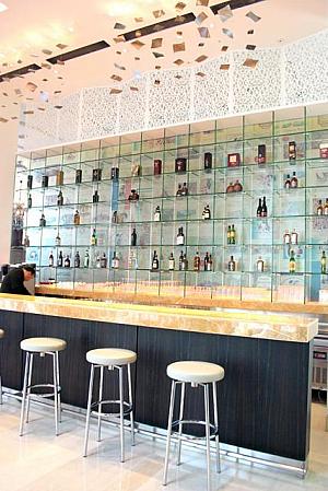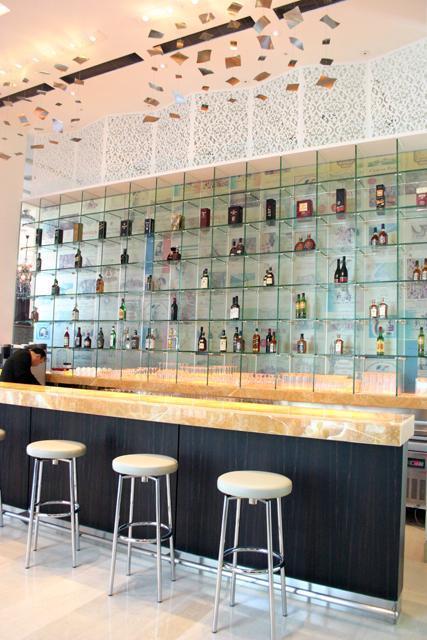 天井が高く開放感たっぷり。白い壁にシャンデリアをはじめアンティークなインテリアが調和した落ち着いたオシャレな雰囲気です。こちらで朝は簡単な朝食ビュッフェをいただき、お昼から夜にかけてはカフェ&レストランとして利用、また入口横にバーカウンターもあり、夜はお酒も楽しめます。