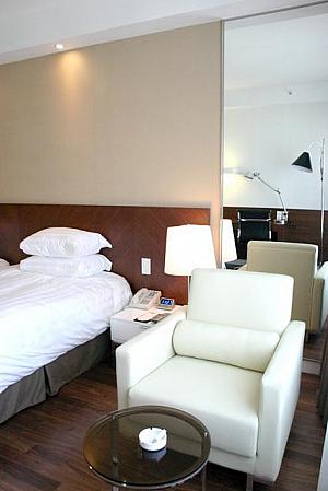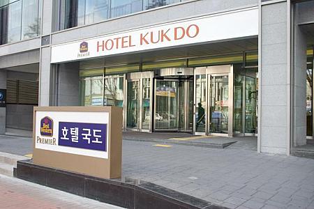 こんにちは!ナビです。今日はソウル市内中心部のホテル業界が警戒している?!ともいわれる話題のホテルをご紹介しましょう!2007年3月にオープンした「ベストウェスタンプレミア・ホテル国都(クット)」です。場所は乙支路4街。周りはソウル市内中心部の観光地に囲まれ、地下鉄駅・市内バス・空港バスの停留所がホテルから徒歩0~2分ととっても便利。またオープン仕立てでキレイなのはもちろん、全客室無料インターネット、ウォシュレット、LCD壁掛けテレビなどの設備も充実し、価格もお手ごろ。さらに!シンプル&シック&機能的なインテリアが女性客に好評!というわけで、国内外のビジネスマンだけでなく女性観光客にも人気急上昇中のホテル、らしいんです。そしてもう1つ忘れちゃいけないビックポイントがフロントに日本人スタッフがいること。つまり、日本人に合ったきめ細かいサービスも期待できる、というワケ!ではさっそく、ホテルに入ってみましょう!
