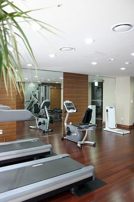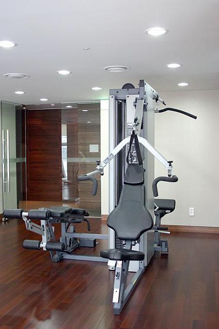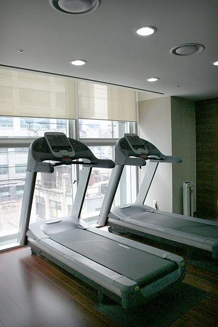 ランニングマシーン、ウェイトトレーニング用などの機械が3種類ほど設置された、こじんまりとしたジムルーム。また利用時間は決まっているので、運動したい方は時間を確認してくださいね。