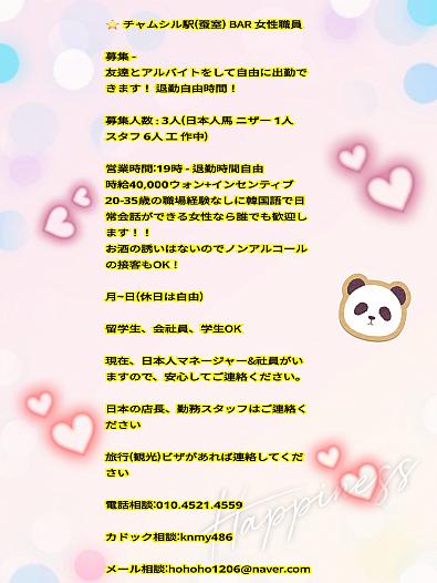 20-35歳の職場経験がなくても韓国語で日常会話ができる女性なら誰でも大歓迎!! 酒の誘い