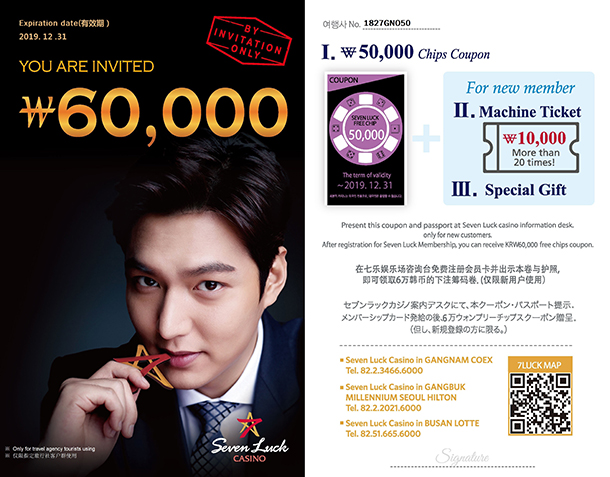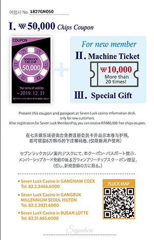 | 住所 | ソウル市中区(チュング)南大門路5街(ナンデムンロオーガ)395番地 ミレニアムソウルヒルトンホテル1階 セブンラックカジノ |
