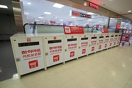 ロッテマートの規定サイズ以外の鞄や、他店で購入した商品などはショッピングフロアには持ち込めません。予めショッピングフロア入口付近にあるロッカーに預けましょう!