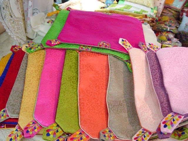 枕カバー、座布団カバーが結構売れ筋。日本人もよくお土産に買っていくらしいです。色も種類で原色あり、淡い色ありの品揃え、その他にもスリッパ、針刺しなどいろいろあり。