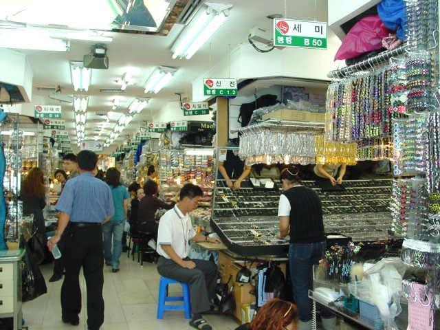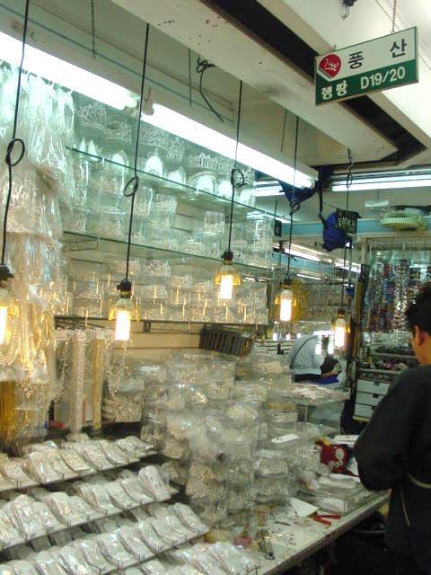 ナビは全然知らなかったけれど、なにやら南大門にアクセサリーの問屋ビルがあるらしい。さっそくアクセサリーを直販する南大門市場ビル(レンタン、南門アクセサリー)に直行。中に入るとナビもビックリ!ワンフロア−アクセサリーや小物などのお店がびっしり。商品を売りながら作ったりもしている。リング、ブレスレット、ピアス、ビーズ物からティアラなどの王冠まで、ここかしこでキラキラ煌びやか。業者相手の問屋さんということで、普通はまとめ買いが基本ですが、バラ売りもしてくれるそう。バラ売りはちょっと高くなると言ってもまだまだ全然安い!