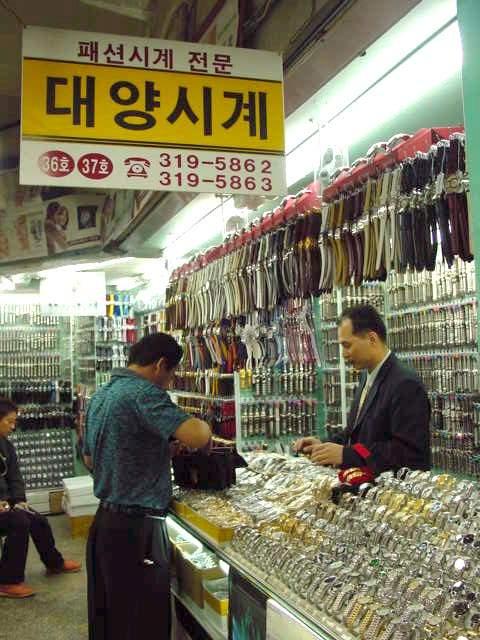 入口を入って突き当たりのお店。お店に所狭しと並んでいる時計は2,000種(!)を越え、価格も4,000ウォン~25万ウォンと多種多様です。