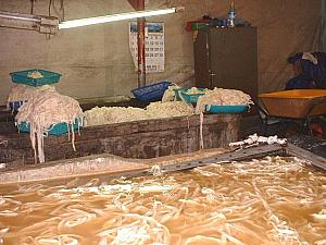 横の建物には韓紙工場があり、一枚一枚手作業で韓紙を作っていました。植物から繊維を摘出して、水で溶かして、貼って乾かす・・・大変な重労働ですね。私は民俗村のように白い韓服を着たオジ様達が働いている様子を想像して行ったのですが、予想に反して普通の身なりでした。ここで作られた韓紙は韓国全土に売られていくそうです。