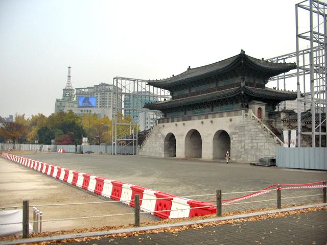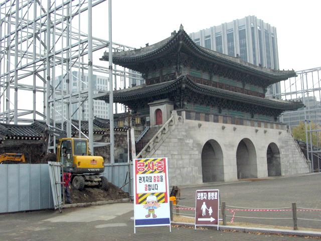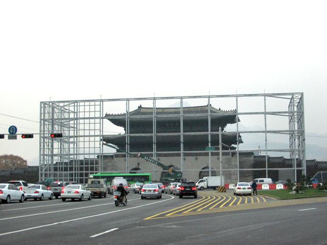 ここは景福宮にある光化門。観光スポットであるこの光化門&周辺は、撤去&修復・復元のため工事に突入したんです。(この写真は裏に回ったところ。)