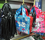 2〜3000ウォンほどのこのカバン、薄いけどなかなか丈夫!持ち手の部分も平たくて幅があるのであまり手が痛くないのもポイント!大きいサイズもあれば・・・