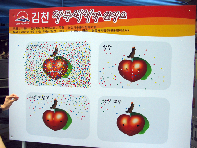 シールを貼って感想や意見を表すこういうボード、韓国ではよく見かけます! -明洞