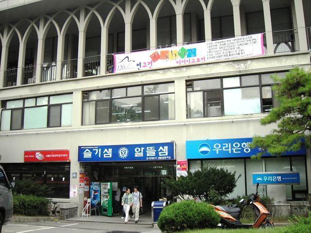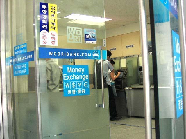 【銀行】 韓国生活で絶対必要になる銀行口座。言葉がままならない状態で果たして口座開設ができるのか!?という不安を掲示板などに書き込まれている方も多いようですが、延世大語学堂に通う方なら心配ご無用!学生会館内のウリ銀行では、少し日本語のできる窓口担当者が丁寧に対応してくれます。私はパスポートだけで口座作成に成功しました。 もちろん両替も可能。こちらはウリ銀行に口座がなくても大丈夫。その日のレートも一目でわかるようになっています。