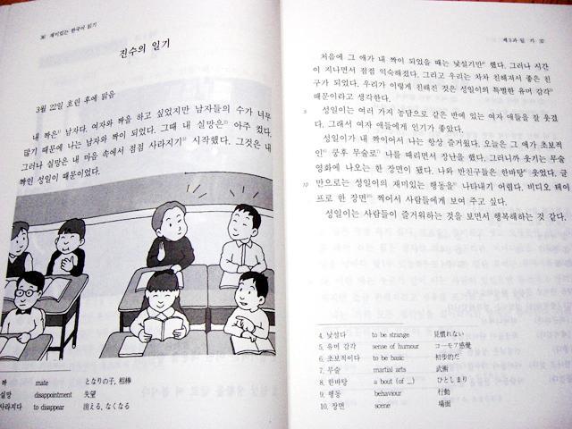 毎日1単元ずつ進む仕組みになっています。これは日本人用のテキストなので、新出単語などは日本語で説明されています。