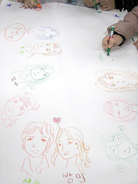 中国人の女の子がいるので、彼女がクラス全員の似顔絵を書いてくれました。