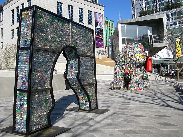 ペットボトルやプラスチックの廃材で作られたヘチ・・・近くで見ると、なかなかの迫力です^^;