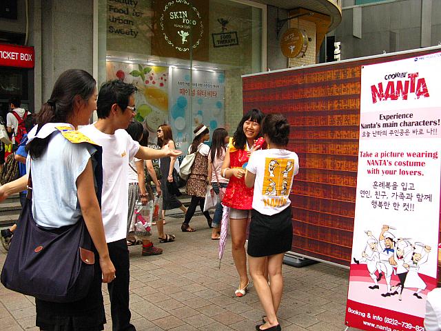 このイベント、毎週水曜日と土曜日の12:30~13:30にこちらNANTA明洞公演の劇場前で8月いっぱいやっているそう!もちろん無料で、日本語スタッフもいましたョ。見かけたら、気軽に参加してみては!?
