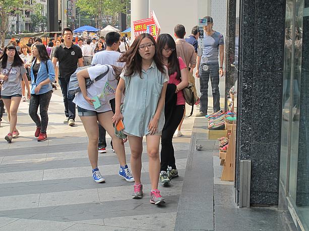 こちらの女の子は、ブラウスのみ!!?そんなはずはありません。下にはちゃんとショートパンツ。長い丈の服に、短いボトムスを合わせて、下に何もはいてないように見える「下衣失踪(ハイシルチョン)スタイル」も引き続き流行中!