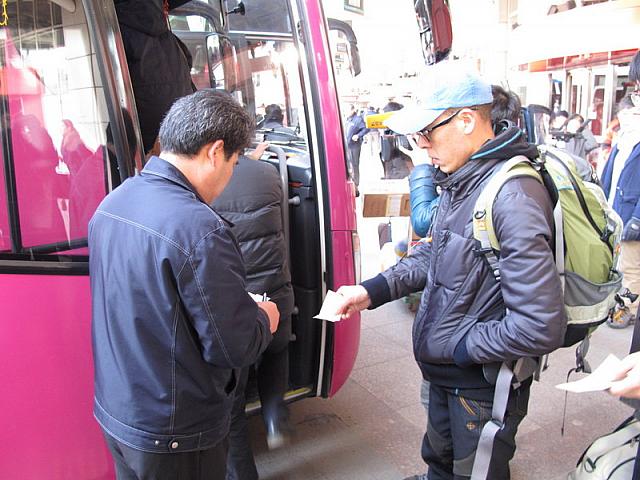 ズラッと並んだ高速バス。行き先を間違えないようにー!