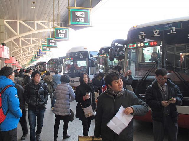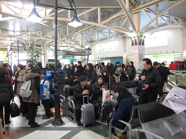 寒波到来中のソウル。バスを外で待つのがツラいので、出発ギリギリまでターミナルの中で待機。