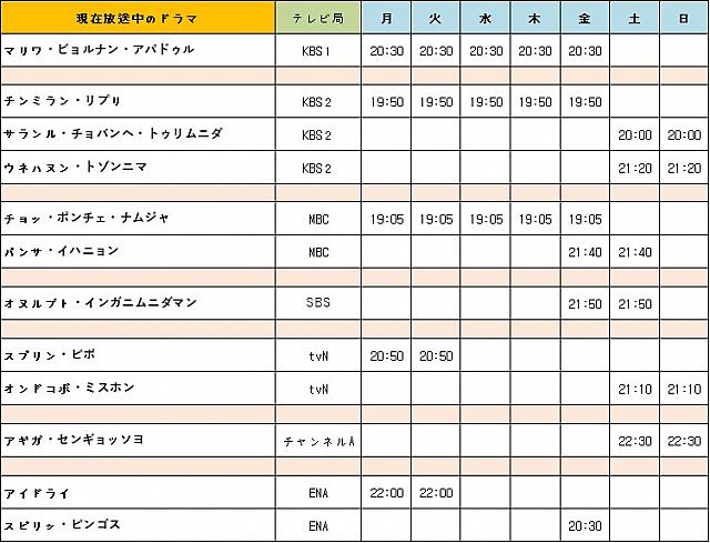 ☆ただいま放送中のドラマ<月~金連続ドラマ>☆