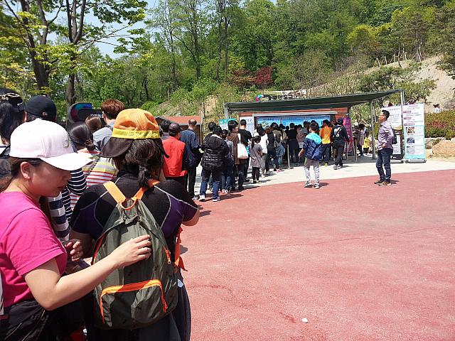 今度はチケット売り場までの長い長い大行列。見ると200mは続いています。けっこう暑くて炎天下の中、コーミィ一家は30分以上も待つことに。観光地はやっぱり午前中が狙い目なのよねと大反省・・・ようやくチケットを購入し、いよいよ洞窟へ。以前は入場料が無料でしたがリニューアルオープンして入場料がかかるようになりました。大人は4千ウォン、子供1500ウォンでした(2015年5月時点)。
