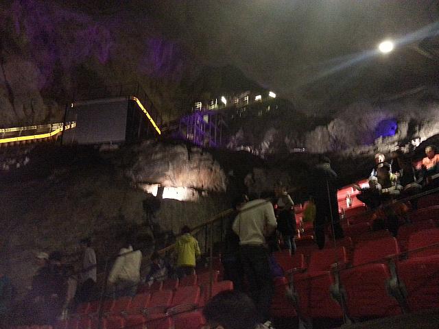 鳥や太古の生物?を見学して進むとと芸術の殿堂と呼ばれるアート劇場がありました。洞窟内とは思えないぐらい天井が高くとても広い場所。音響、響くだろうな~
