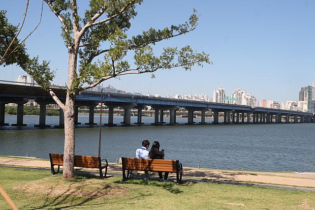 漢江沿いは長いサイクリングロード!自転車に乗って楽しむ人も!