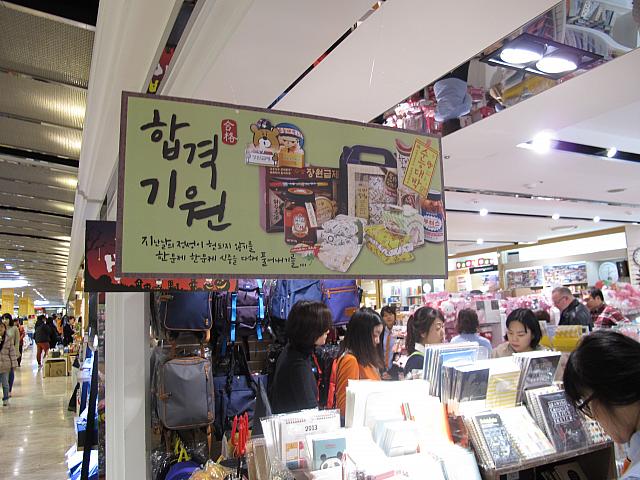 ■■受験生は追い込み!合格祈願グッズがちまたに!12月の大学入試試験に向けて、いよいよ受験生は追い込み体勢。教会やお寺にはお百度参りのように100日祈願するお母さんたちの姿が見られます。そして文房具店やお菓子コーナーにはすでにD−dayの表示も。なぜお菓子屋さんかというと・・・そう、合格グッズのシーズンですね。受験生の合格を祈願する合格飴。今年はどんなグッズが売り出されるでしょうか?