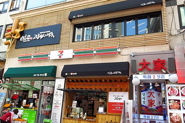 セブンイレブンと一緒にやってるみたい?2階にもお店があるようです。コレサというとプサンで人気のオムッ(練り物)専門店。早くもソウル明洞に上陸!?