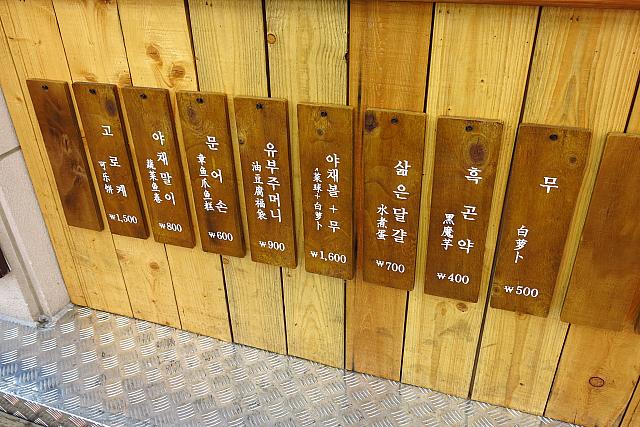 大根500ウォン、黒コンニャク400ウォン、ゆで卵700ウォンってずいぶん安い!?それにしても韓国のオデンで玉子やコンニャクはかなり珍しい~