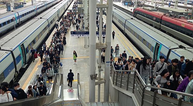 ナビは連休の初日、3日にソウル駅に行ってみると、スーツケースや贈物を手にした方がたくさん!