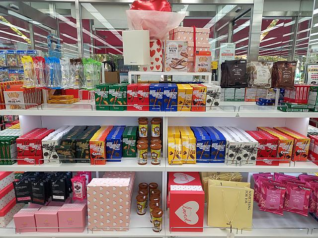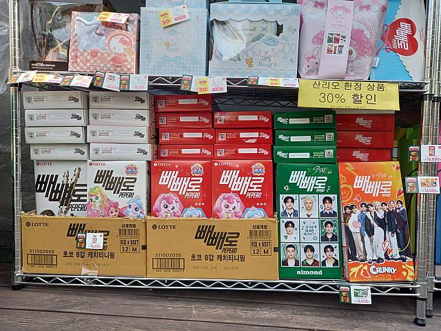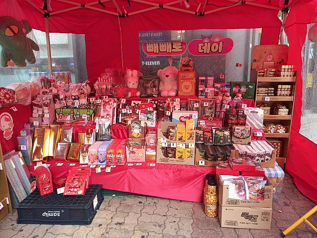 コンビニ前には、プレゼント用のペペロやチョコレートなどが並んだやこんな特設テントがでてます~^^