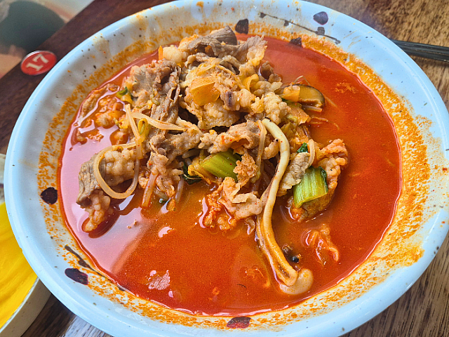 シーフードだけでなく薄切り牛バラ肉の旨味がたっぷりの「チャドルバギチャンポン」も一緒に注文。お腹いっぱい食べてきました。