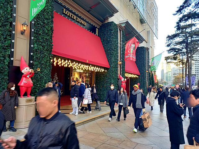 ソウル明洞ロッテデパート前もクリスマスの雰囲気いっぱいです^^