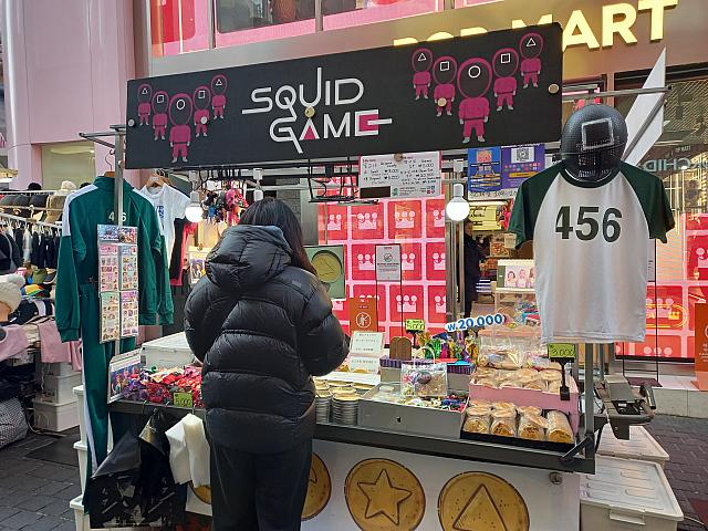 イカゲーム関連の屋台~。カルメ焼きもありま~す。