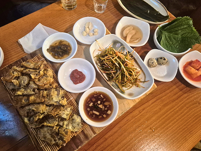 代表メニューの牛肉チヂミを注文。セッティング完了!